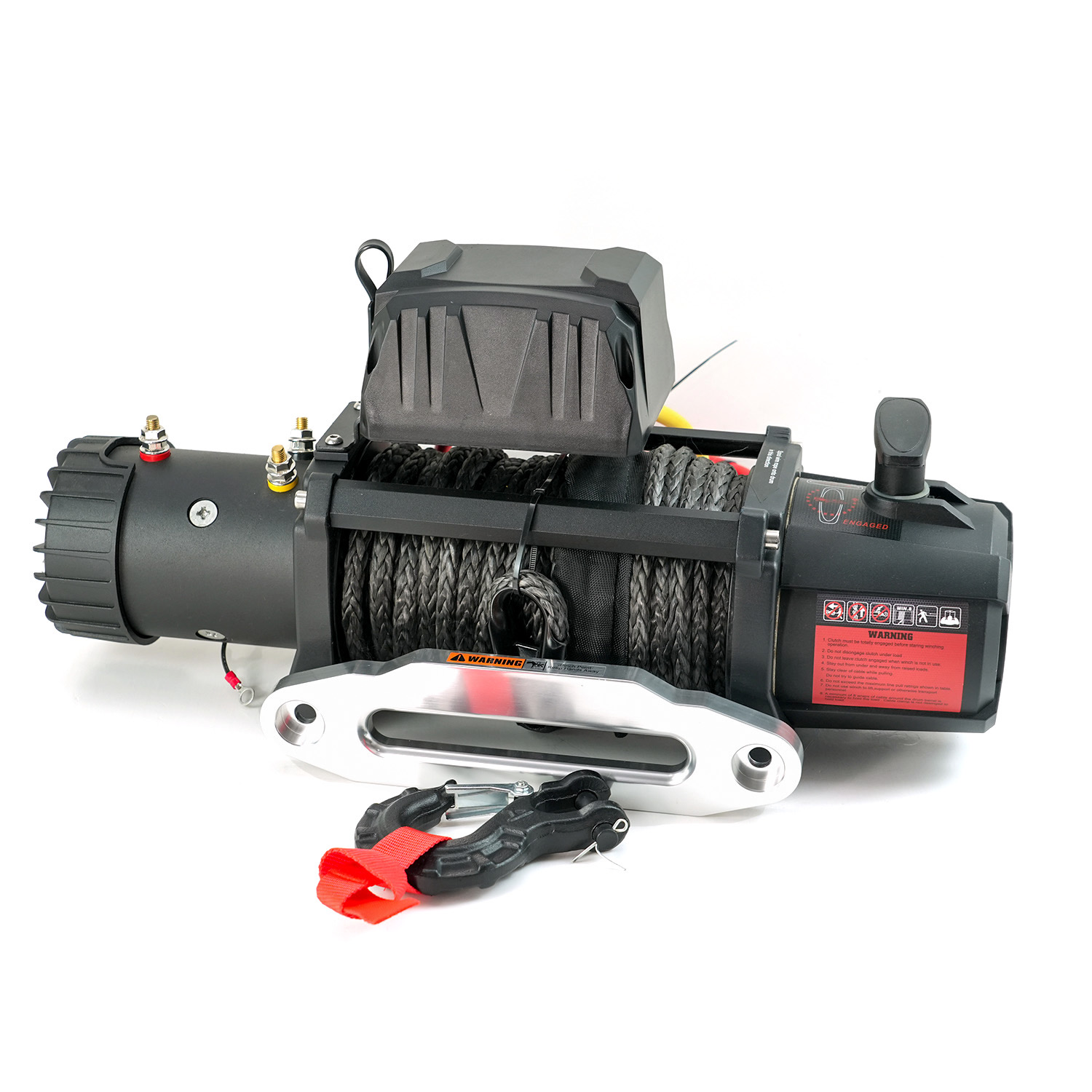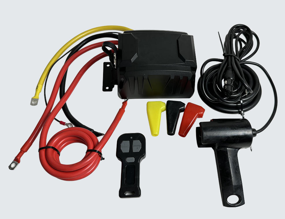 (One 450 A solenoid inside of control box . both wire and wireless remote controls, Aluminum fairlead , 10 mm x 25 m synthetic rope . More than 12 months warranty . We can laser etched your logo on the front winch tie bar .